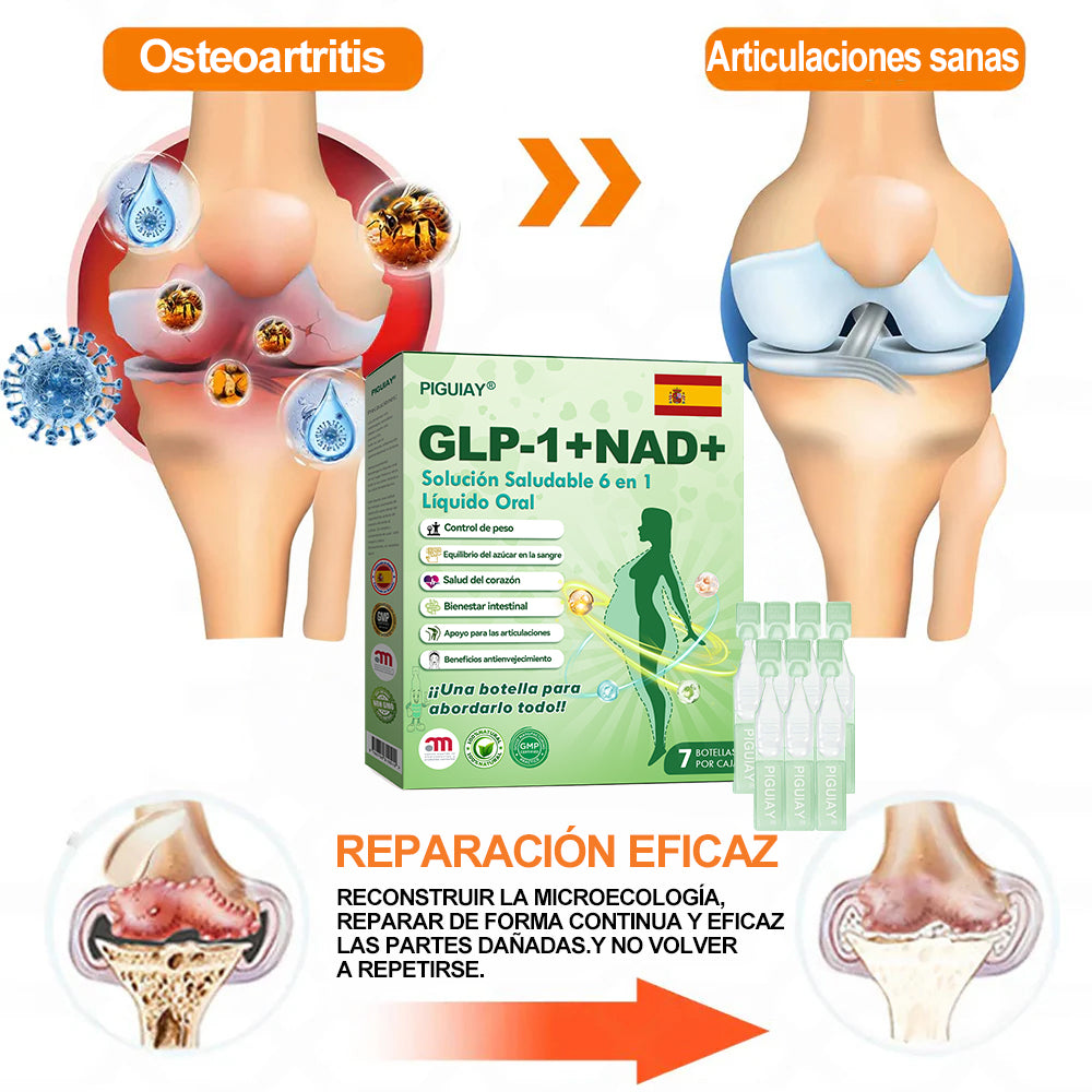 La soluciรณn oral lรญquida GLP-1 SEIS EN UNO fue desarrollada por un equipo de mรกs de 30 expertos internacionales en endocrinologรญa y diabetologรญa tras mรกs de 3 aรฑos de investigaciรณn. Combina meglutida con potentes ingredientes herbales para estimular el metabolismo, acelerar la quema de grasa y favorecer la salud digestiva y linfรกtica. Esta soluciรณn oral ha sido aprobada por la Agencia Espaรฑola de Medicamentos y Productos Sanitarios (AEMPS) por su seguridad y eficacia, ofreciendo una soluciรณn con respaldo cientรญfico para la pรฉrdida de peso y el bienestar general.